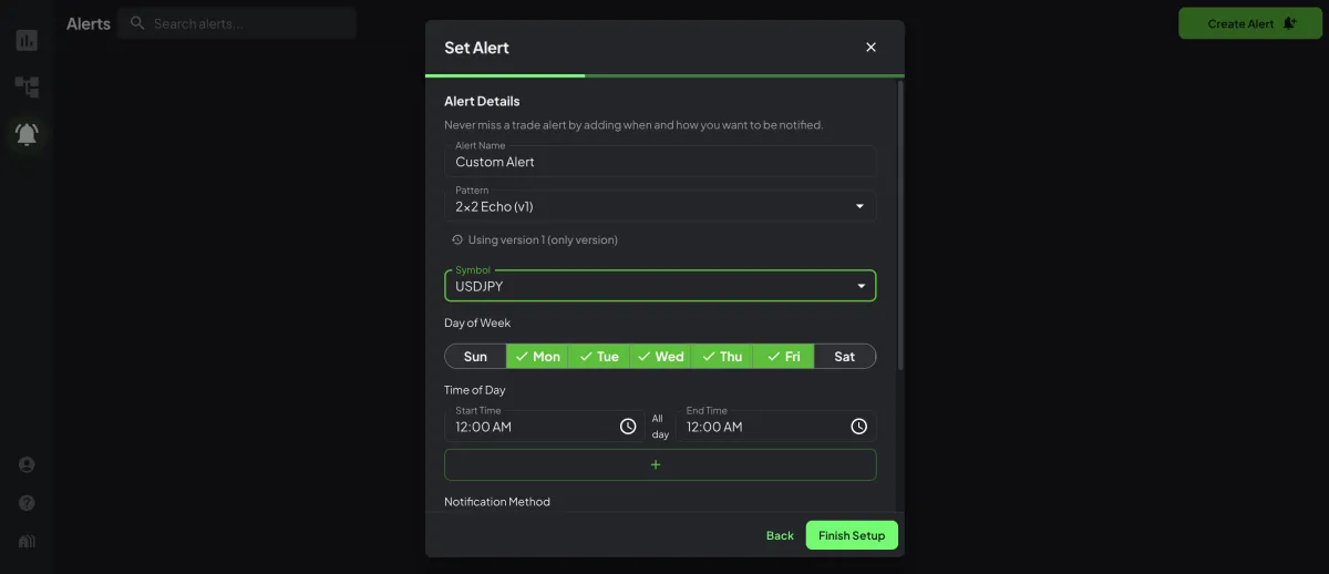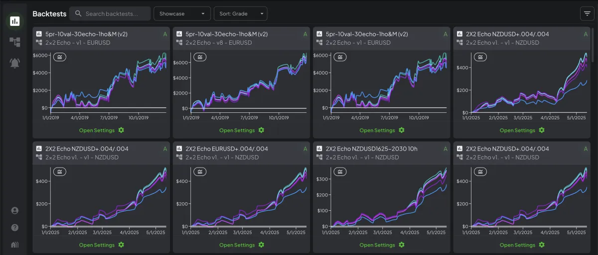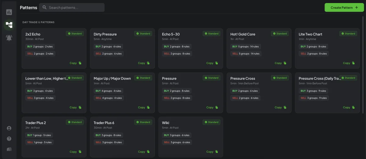 The Strategy Suite includes our backtester, pattern builder, and real-time alert system. Together, these tools allow you to create, test, and monitor strategies before putting them into live execution.